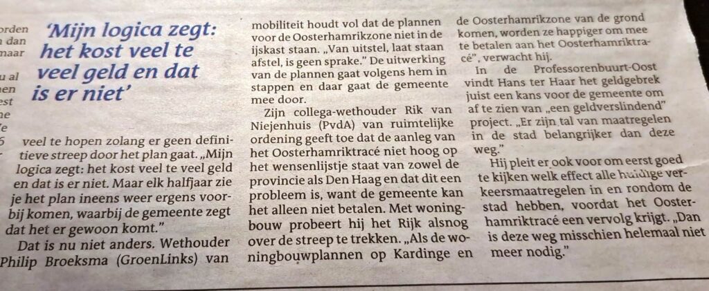 Dagblad van het Noorden, 2 december 2023, met BO-secretaris Jaap de Graaf.