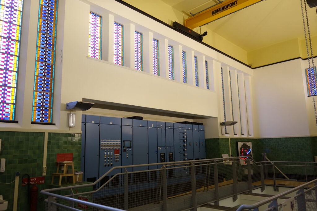 Het rioolgemaal is gebouwd in 1928 om de riolering van de stadsuitbreiding Oosterparkwijk te bemalen. Het gebouw is ontworpen door stadsarchitect Jan Siebe Bouma. Met links bij de ingang een bouwsculptuur ontworpen door de Groninger beeldhouwer W. Valk. Kom binnen en ontdek de prachtige langgerekte glas-in-loodramen met geometrische motieven in oranje, rood en paars. De nog originele elementen waaronder de turkooize, geglazuurde wand- en vloerbetegeling.